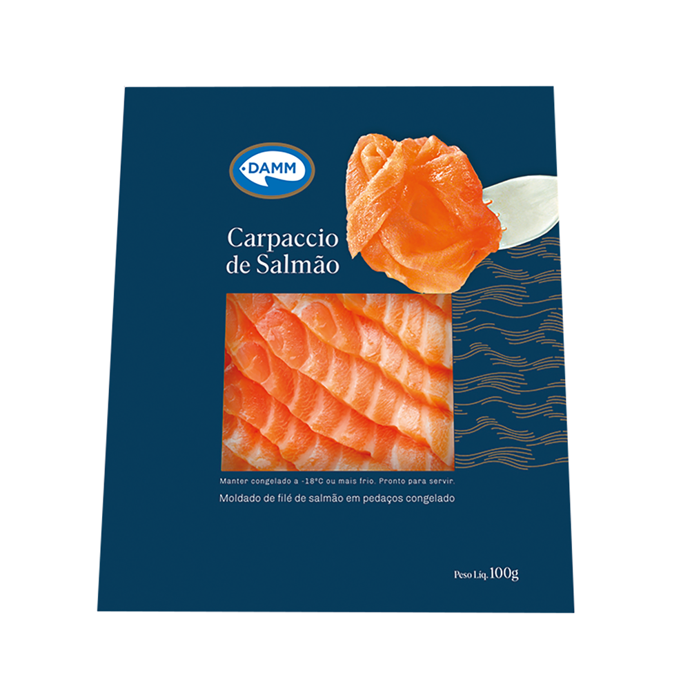 Maravilhoso carpaccio de salmão Damm vem das águas frias do pacífico próximo ao Polo Sul, possui excelência nas certificações ASC e BAP de sustentabilidade e responsabilidade ao meio ambiente. O carpaccio de salmão Damm é rico em ômega 3, proteínas de alto valor biológico e em vitamina D, além de ser livre de conservantes, aromas e colorações artificiais.